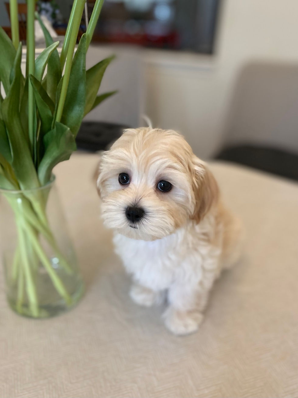 Maltipoo is a designer crossbreed of Maltese and a Toy Poodle that has a very sweet personality. Maltipoos are hypoallergenic and non-shedding. They are also known as great therapy dogs.